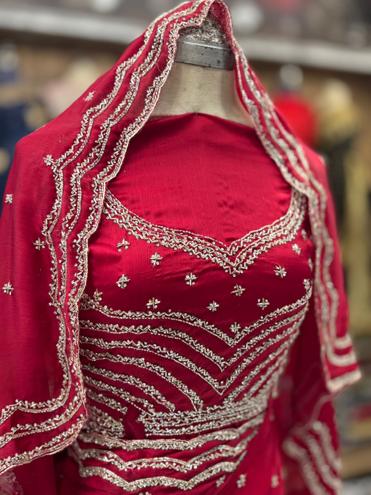 Crafted from lustrous silk, its luxurious drape flows effortlessly, creating a silhouette fit for a modern queen. Each bead and shimmer narrates a tale of craftsmanship, elegance, and heritage — perfect for the bride who reigns in grace and confidence.