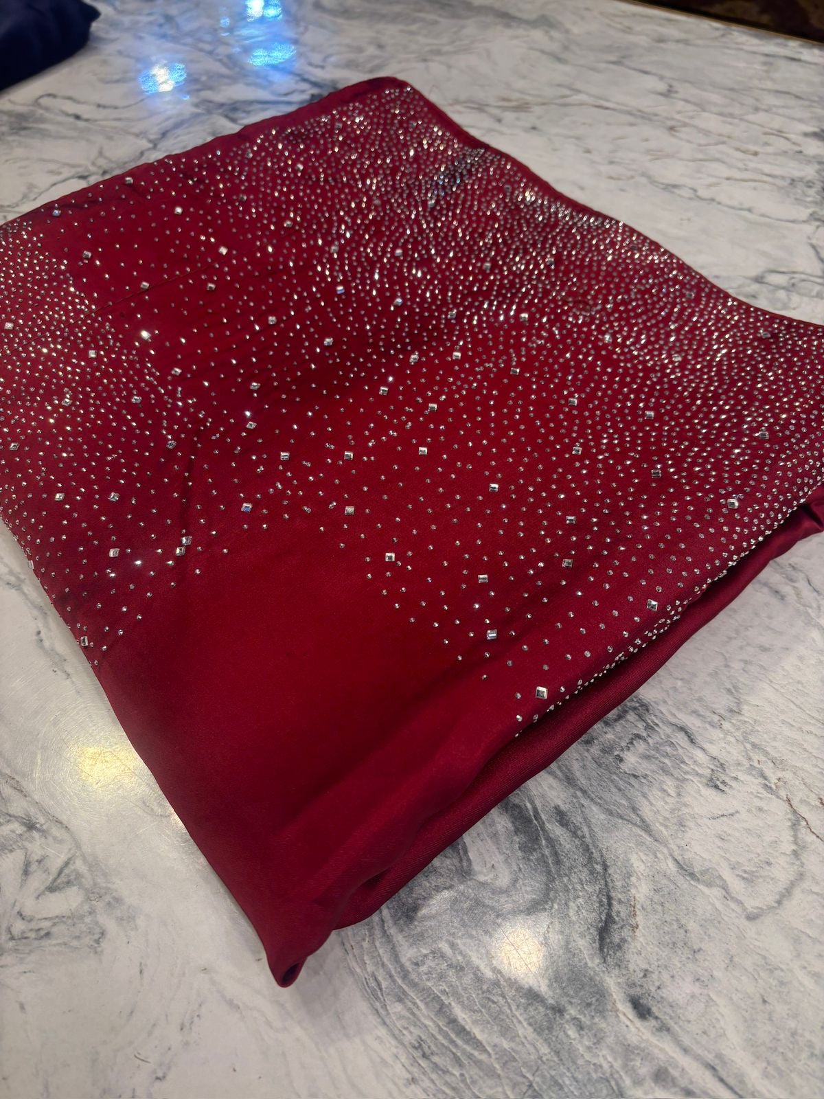 Crafted from luxurious silk ; it offers a flawless drape and a soft, fluid texture that enhances your silhouette. Perfect for evening galas, festive celebrations, or elegant receptions, this saree blends sophistication with a touch of modern glamour.